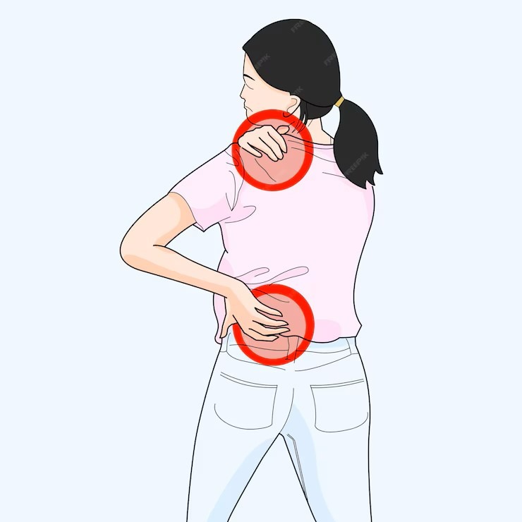 • Sharp, localized pain in the neck, upper back, or lower back, especially after lifting heavy objects or engaging in other strenuous activity.